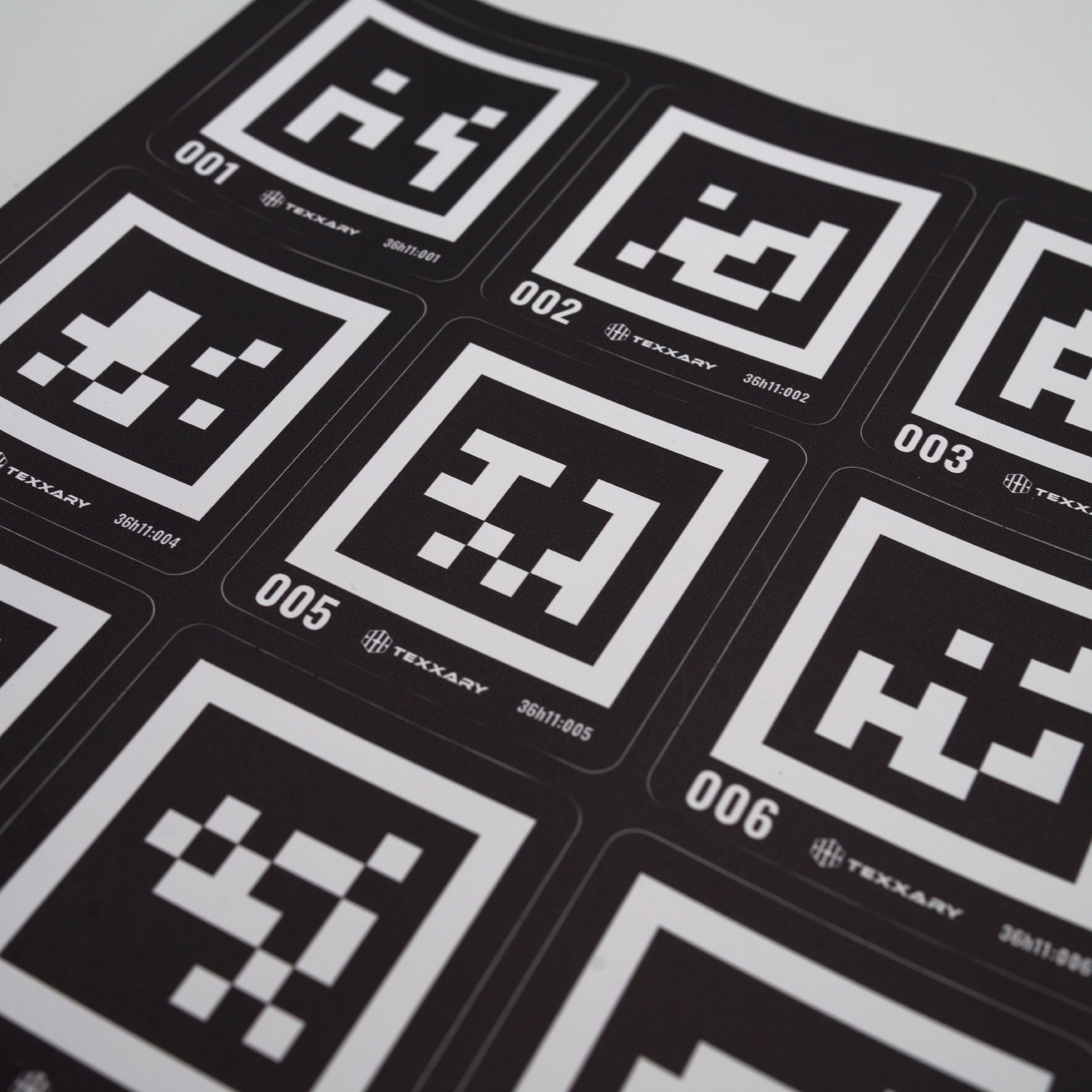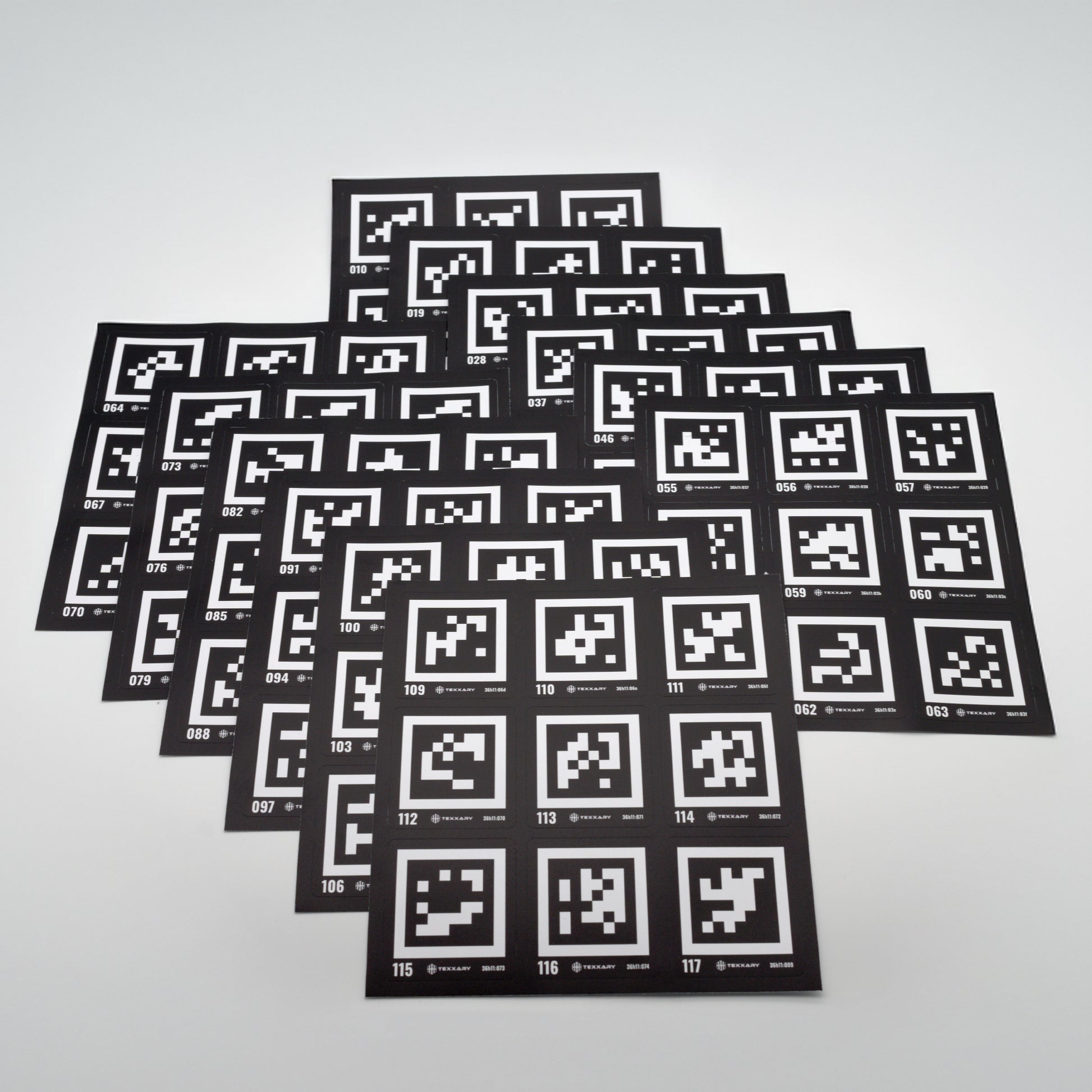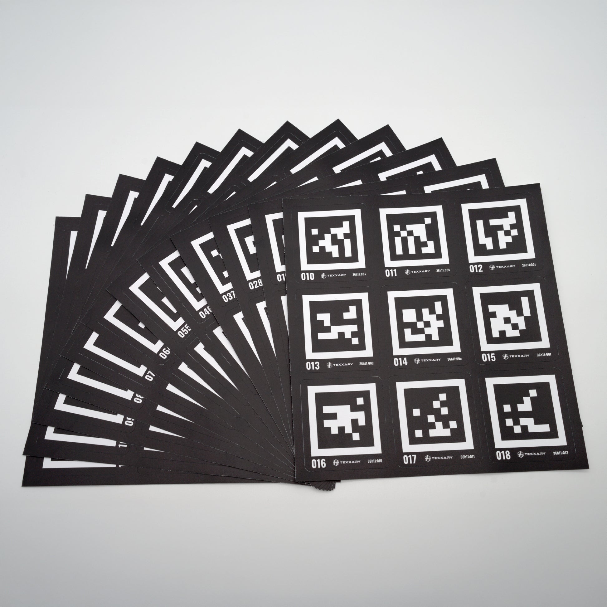 Our 36h11 April Tags Sticker Sheets with 108 unique targets are designed for precision and durability in indoor and outdoor applications. Each sheet features nine april tags stickers on a matte plastic film, optimized for scanning and photogrammetry tasks. These stickers are removable, tear-resistant, and boast a non-reflective finish for accurate data capture. Engineered for resilience, they are waterproof, UV-protected, and withstand diverse environmental conditions. Washable and reusable, these vegan stickers offer a sustainable solution for scanning, computer vision and robitics projects. Ideal for professionals seeking reliable, high-performance tools for their photogrammetry and other professional needs.