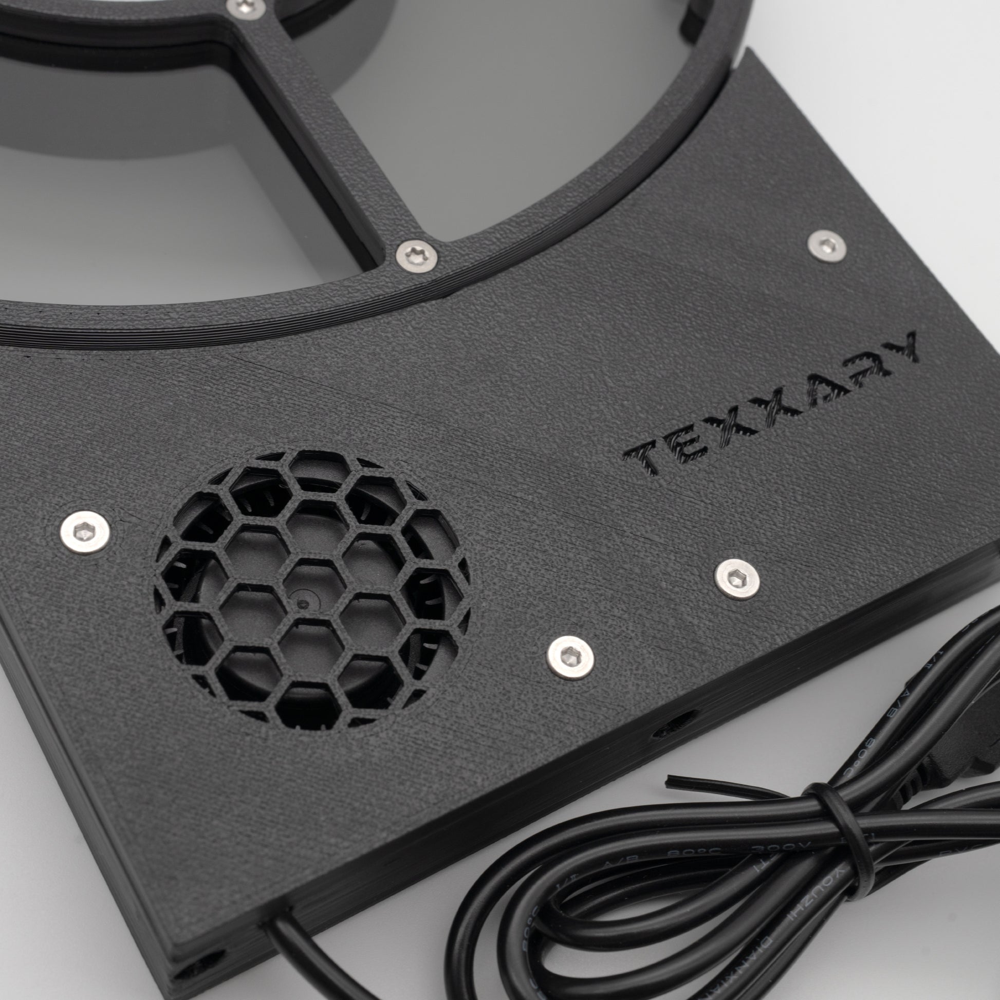 Extended scanning sessions can generate heat, potentially affecting the ring flash’s performance. This filter comes with two integrated USB fans that keep your ring flash cool and stable, even during long photogrammetry sessions. This ensures consistent lighting quality and protects the longevity of your equipment. Please note that no batteries are included, so the fans must be powered via a USB power bank or other USB source.